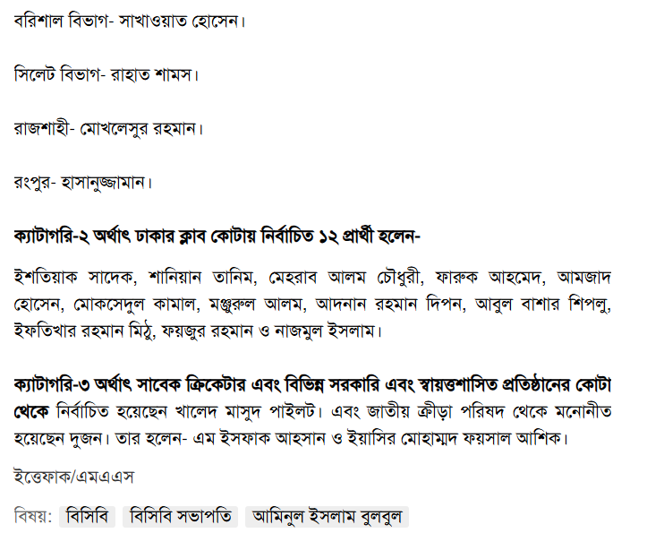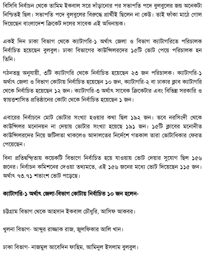 বিনা প্রতিদ্বন্দ্বিতায় বিসিবি সভাপতি নির্বাচিত হলেন বুলবুল, সহসভাপতি শাখাওয়াত-ফারুক – দৈনিক ইত্তেফাক Read on the Newspaper: https://www.ittefaq.com.bd/755412/%E0%A6%AC%E0%A6%BF%E0%A6%A8%E0%A6%BE-%E0%A6%AA%E0%A7%8D%E0%A6%B0%E0%A6%A4%E0%A6%BF%E0%A6%A6%E0%A7%8D%E0%A6%AC%E0%A6%A8%E0%A7%8D%E0%A6%A6%E0%A7%8D%E0%A6%AC%E0%A6%BF%E0%A6%A4%E0%A6%BE%E0%A7%9F-%E0%A6%AC%E0%A6%BF%E0%A6%B8%E0%A6%BF%E0%A6%AC%E0%A6%BF-%E0%A6%B8%E0%A6%AD%E0%A6%BE%E0%A6%AA%E0%A6%A4%E0%A6%BF-%E0%A6%A8%E0%A6%BF%E0%A6%B0%E0%A7%8D%E0%A6%AC%E0%A6%BE%E0%A6%9A%E0%A6%BF%E0%A6%A4