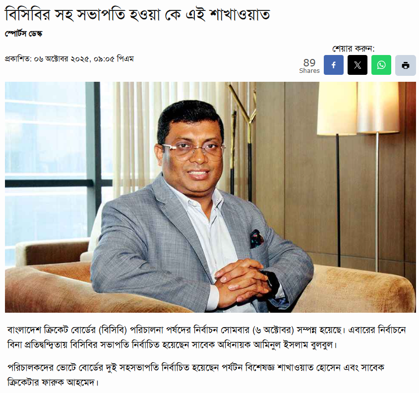 বিসিবির সহ সভাপতি হওয়া কে এই শাখাওয়াত-Dhaka Mail Read on the Newspaper: https://dhakamail.com/sports/258893