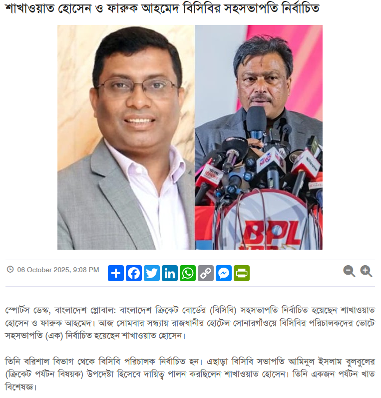 শাখাওয়াত হোসেন ও ফারুক আহমেদ বিসিবির সহসভাপতি নির্বাচিত-Bangladesh Global Read on the Newspaper: https://www.bangladeshglobal.com/?p=cont&news_id=95745&sub_cat=1